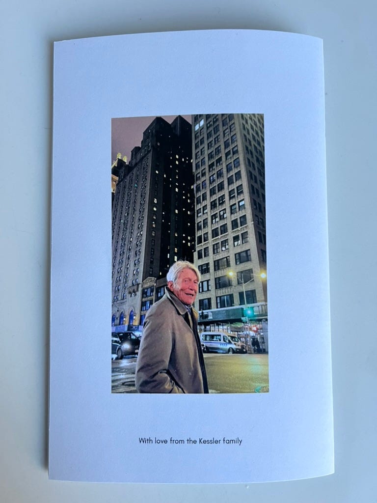 He was buried near his parents deep into Long Island last Sunday. We thought that in the fog of his recent dementia he’d misremembered their resting place as, having each poured dust on his coffin, we wandered through the huge graveyard in search of his folks’ headstone in the freezing rain – but he was right, there they were, Joseph and Gertrude Kessler, a few hundred yards from their son Felix, three of the quartet who’d arrived in New York by boat in February 1939, refugees from Austria, their apartment and bookbinding business confiscated by invading Nazis, with nothing but grim disaster otherwise in store for the Kesslers of Vienna post-Anschluss. The remaining member of the quartet, Dad’s younger sister Eva, gave my arm a squeeze as we found their final destination. “There’s no one alive now who’s known me all my life,” she said.