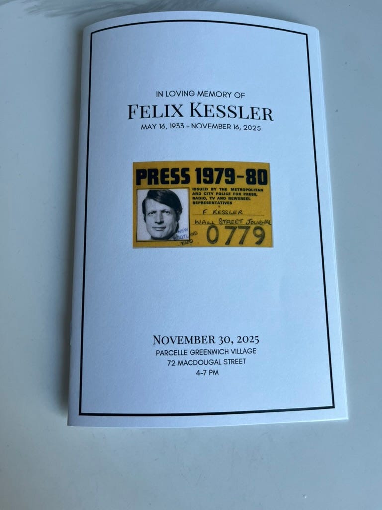 Afterwards, we returned to Greenwich Village for a memorial at Parcelle on MacDougal Street, the night filled with tales of Felix Kessler the father, friend, lover, kind-hearted colleague, a fiendish poker shark nicknamed ‘Cuffs’, as well as an expert editor and reporter. It was a surprise to learn how many illustrious journalists were keen to line up to proclaim him their newsroom hero both in Europe and New York, the guy who’d informed their own paths in journalism. We toasted him appropriately and ate finger foods, all the while acknowledging that, ironically, he’d have delivered the best speech himself, but he was sadly unavailable. Then, after a dinner with my brothers nearby, I struck out a little tipsily towards my hotel downtown near the site of the World Trade Centre.