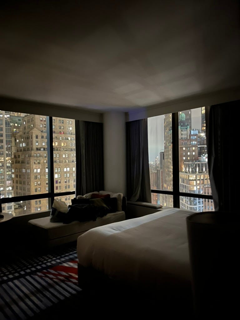 As I wandered along the unusually peaceful post-Thanksgiving streets, the music rushed through me as if adrenaline. The walk took 35 minutes, but the playlist was 90 minutes long. I was enjoying it so much that I pressed pause on Cass McCombs’ Peace (“peace is what we say when we say goodbye…”), squeezed the elevator button for floor 28, entered my room, flung open the curtains and lay on the floor against the bed gazing upon the high-rise twinkle of New York as I listened to the rest of the playlist.